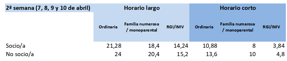 Bi aste/txanda (astebete har daiteke parte). Plaza libreak geratzen badira, 2. astean parte hartzeko aukera emango da: