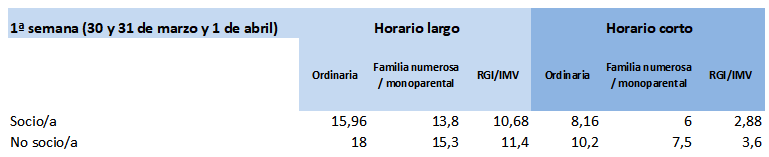 Bi aste/txanda (astebete har daiteke parte). Plaza libreak geratzen badira, 2. astean parte hartzeko aukera emango da: