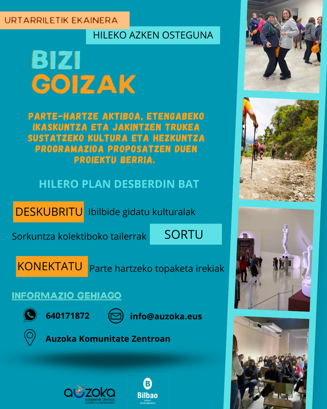 Este mes de enero arranca Bizi Goizak, un nuevo proyecto impulsado desde el Centro Comunitario Auzoka que propone una programación cultural y educativa pensada para fomentar la participación activa, el aprendizaje continuo y el intercambio de saberes entre personas de diferentes edades e intereses.